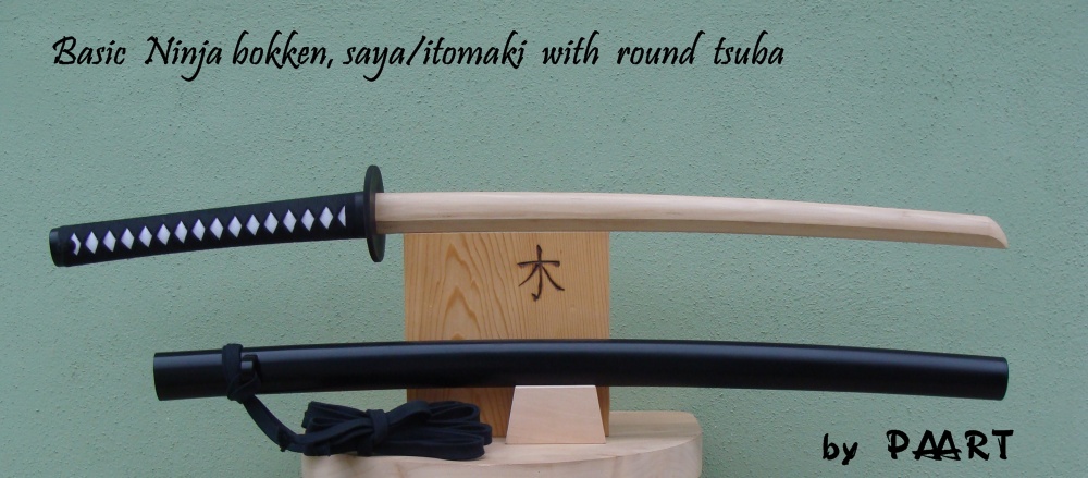 Dear Budo friends,here is few pics of ninja uchigatana bokken with saya and itomaki and round tsuba,