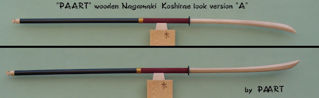 This is PAART Nagamaki "A" vereion, Koshirae look,made from single and strong piece Beech wood, with natural curvature on blade,